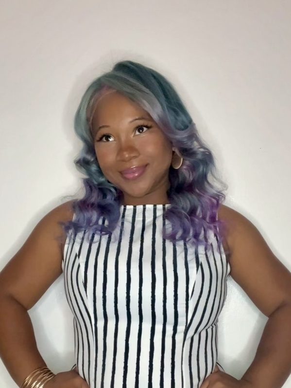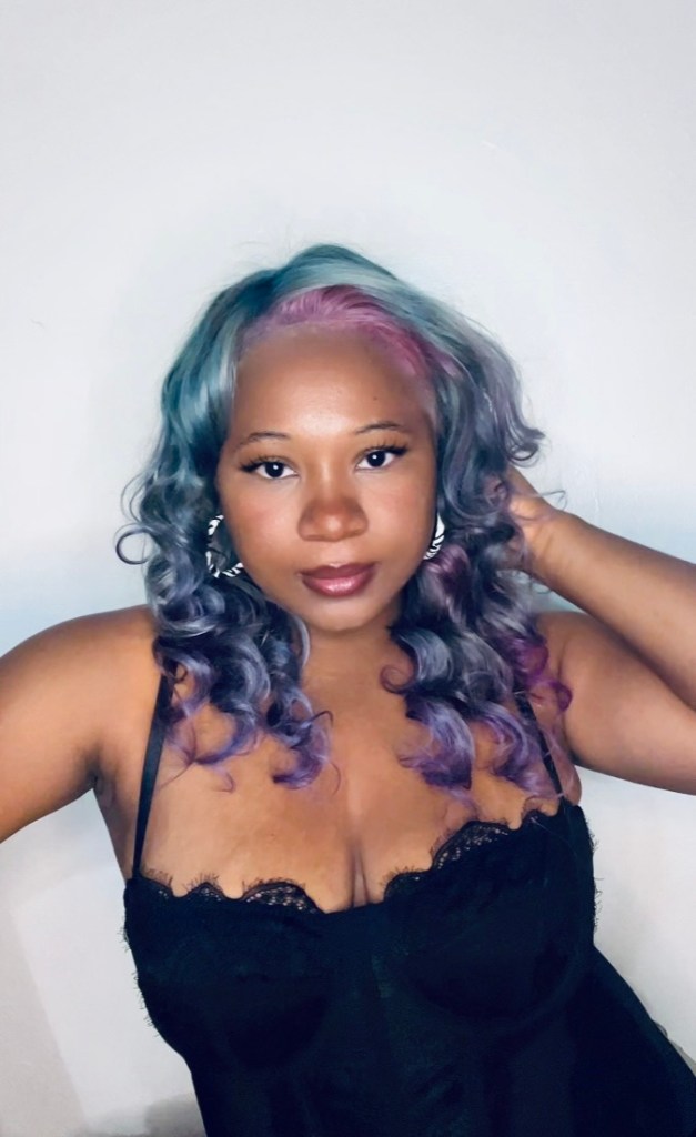 Now that we’re getting to the bottom of things, I realized I didn’t know what I was doing when the purple shampoo started to turn parts of my lavender wig baby blue. Not sure why that happened but hey what do I know ๐ One thing I do know IiiSS: rule of thumb-when all else fails just dye it black. That I did, and the color went to a dark purple with light blue streaks. Such a look just wasn’t gonna work. Along with the pink roots sticking out like a sore thumb. Forget about it! When my sisters got wind and got to see the concoction on top of my head, I got all negative reactions. My youngest sister’s only words were “NO SIS ”